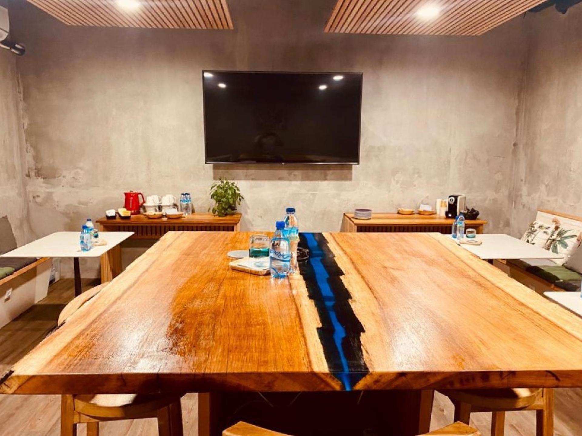 Our air-conditioned meeting room with an area of 40m² can accommodate up to 20 people, in a modern setting, with sofas and workspaces. It’s equipped with Wifi access, a TV - large screen, sound system, flipchart, etc.